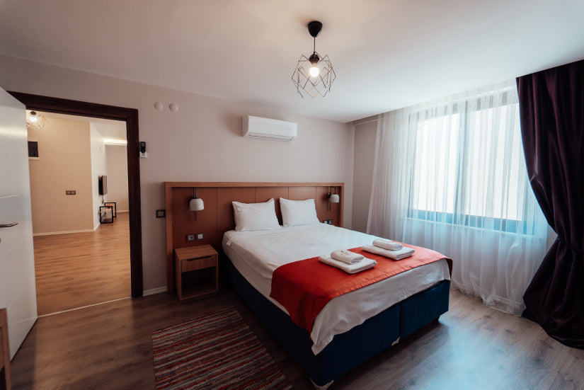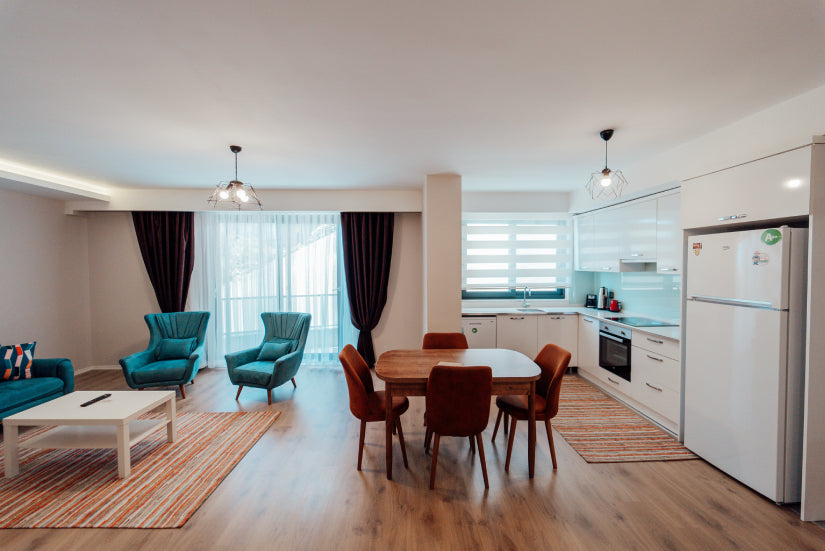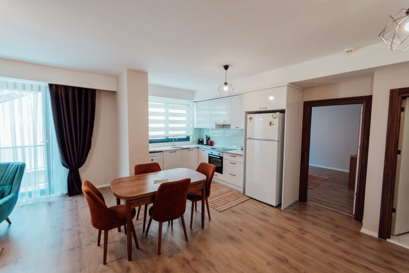Our 1+1 suite has been carefully designed for a family of two. You can enjoy the marina view from your balcony in our suite, which is conveniently located in Antalya's Finike district. Our apartment is located within walking distance of the city center and the sea. Our air-conditioned suite has a bedroom, TV and seating set, fully equipped kitchen and a bathroom. We also have a private parking lot and a pool with a terrace view.