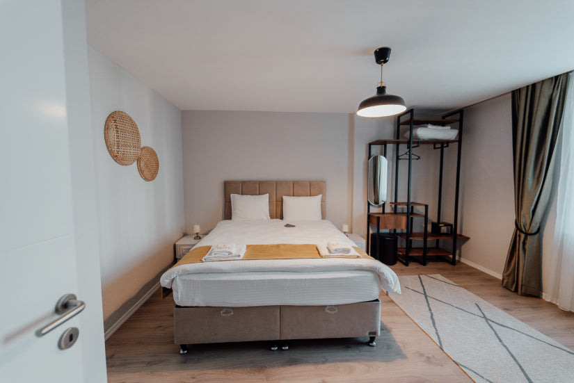 Our 1+1 suite has been carefully designed for families of two. Finike district is located in one of the most convenient locations of Antalya, and offers you balconies with the marina view before your eyes. Our air-conditioned suite, within walking distance of the city center and the sea, has 1 bedroom, a TV and a seating set, a fully equipped kitchen and 1 bathroom. You can enjoy a comfortable holiday with our private parking lot and our pool with terrace view.