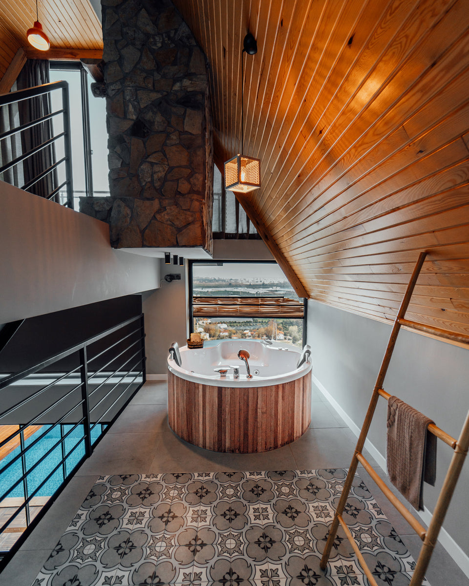180 m2 genişliğinde villa Triangola ; Jakuzili lüx ROMANTİK BALAYI villasıdır, Manzalı jakuzili yatağı, tam donanımlı açık mutfağı, salon, sinema odası ve geniş ve ferah bir villadır. Keyifle ve huzurla vakit geçirebilirsiniz.